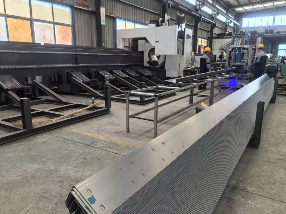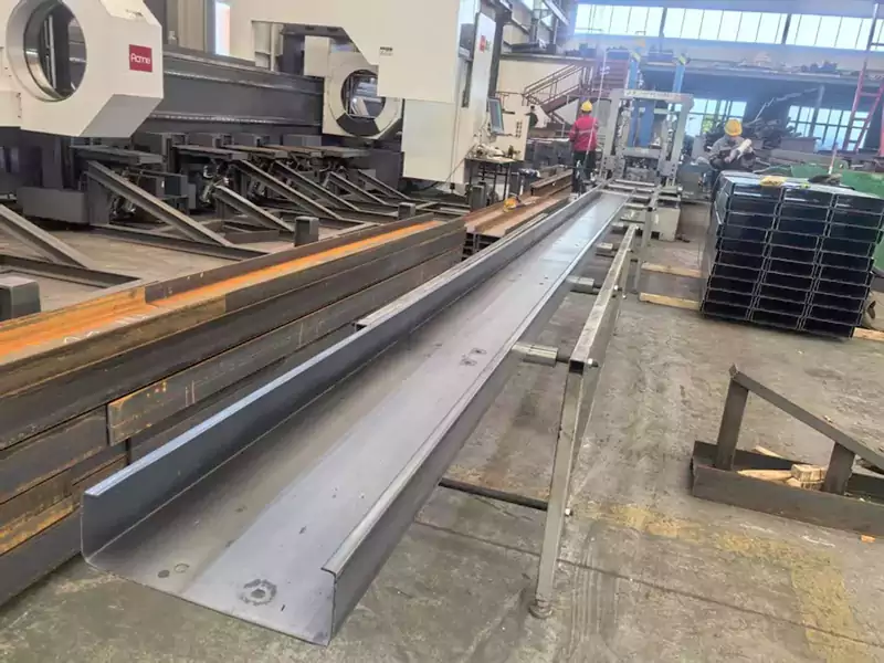 2. Puncionamento: Equipado com uma unidade de puncionamento CNC, suporta puncionamento multi-ângulo de almas e flanges, com uma tolerância de diâmetro de furo de ± 0,2 mm e uma precisão de espaçamento de furos de ± 0,3 mm. Ele também pode produzir simultaneamente furos em conformidade com os padrões de conexão de aço de seção C padrão dos EUA (como furos do adaptador Simpson Strong-Tie).