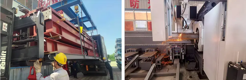 Nossos edifícios de estrutura de aço verde são altamente eficientes e ambientalmente amigáveis, reduzindo a poluição ambiental e as emissões de carbono. A produção de Liweiyuan se concentra na pré-fabricação da fábrica e na montagem no local. Os componentes de aço são padronizados e fabricados em fábricas chinesas, depois transportadas para o canteiro de obras para montagem rápida. Este método melhora a eficiência da produção.