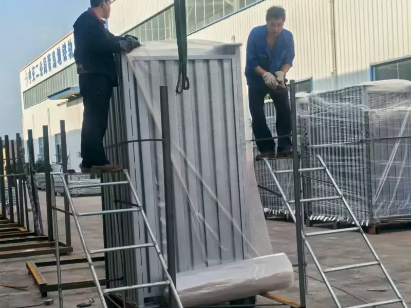 Os tamanhos comuns para cercas de segurança metálicas Liweiyuan incluem: 2 metros de comprimento por 1,5 metros de altura; 2,5 metros de comprimento por 2 metros de altura; e 3 metros de comprimento por 2,5 metros de altura. Tamanhos personalizados estão disponíveis. Os materiais de aço incluem Q235B, Q355B, A36 e A572, atendendo aos padrões europeus e americanos.